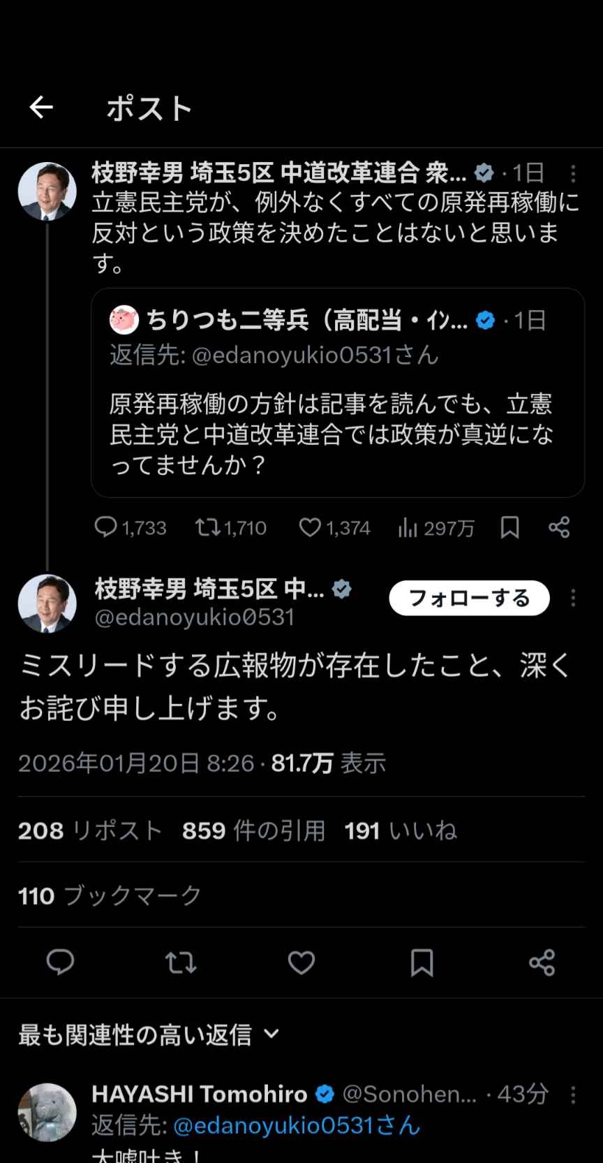 - 野田じゃなくて枝野だったけどどっちでもいいや