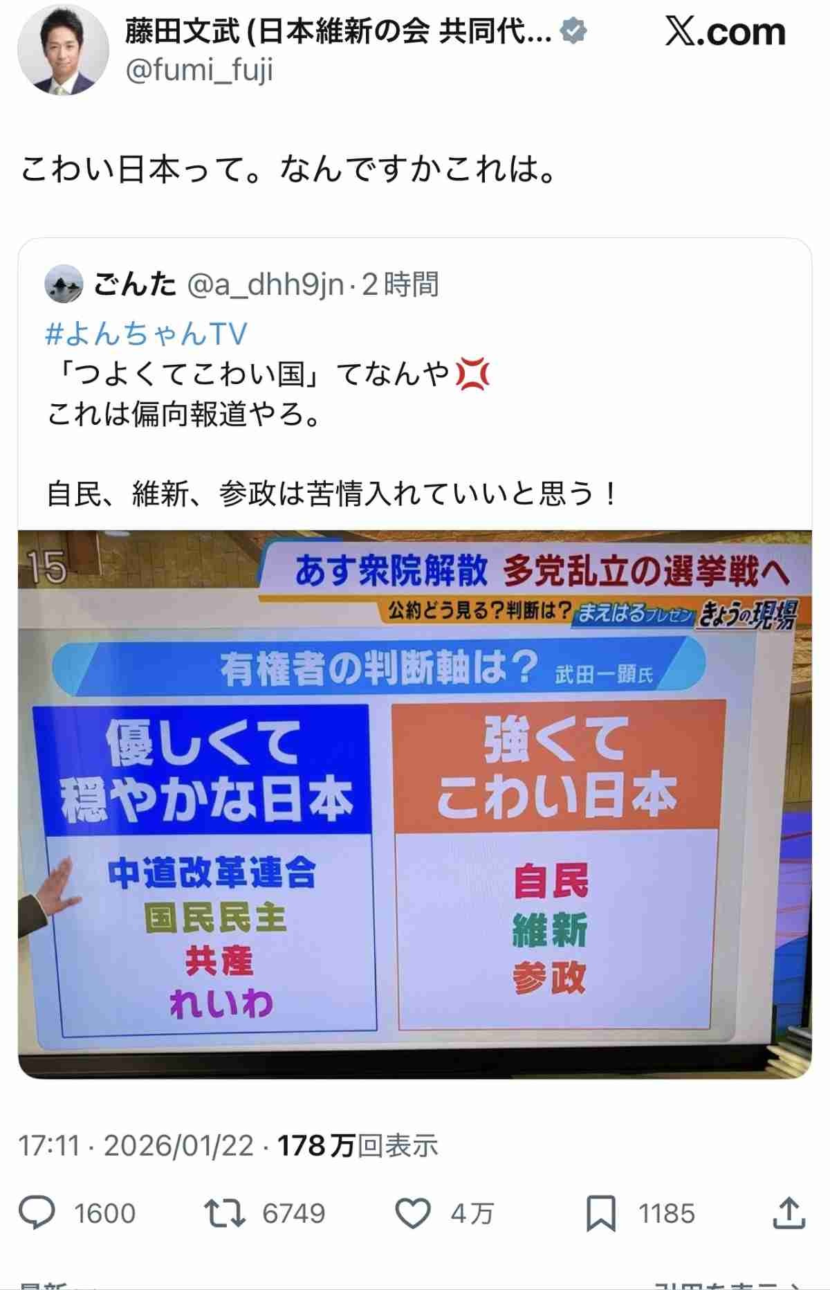 マスコミ出身の平松との対決とかメディア絡みの公金カットもやってたから - 66 : 2026/01/22(木) 19:56:48.020 ID:c9Q3pg/12