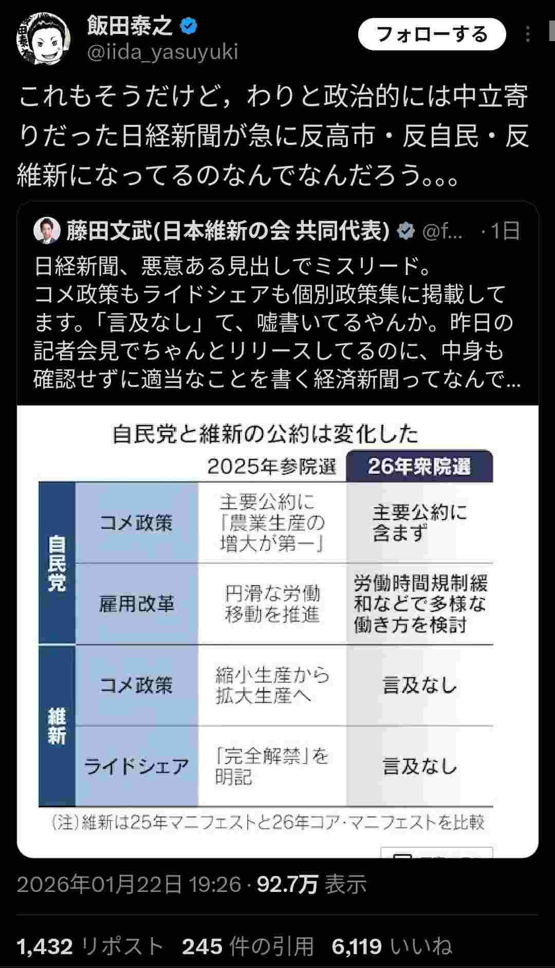 - 日経が中立だったことなんかないというか中立の新聞なんてないやろ