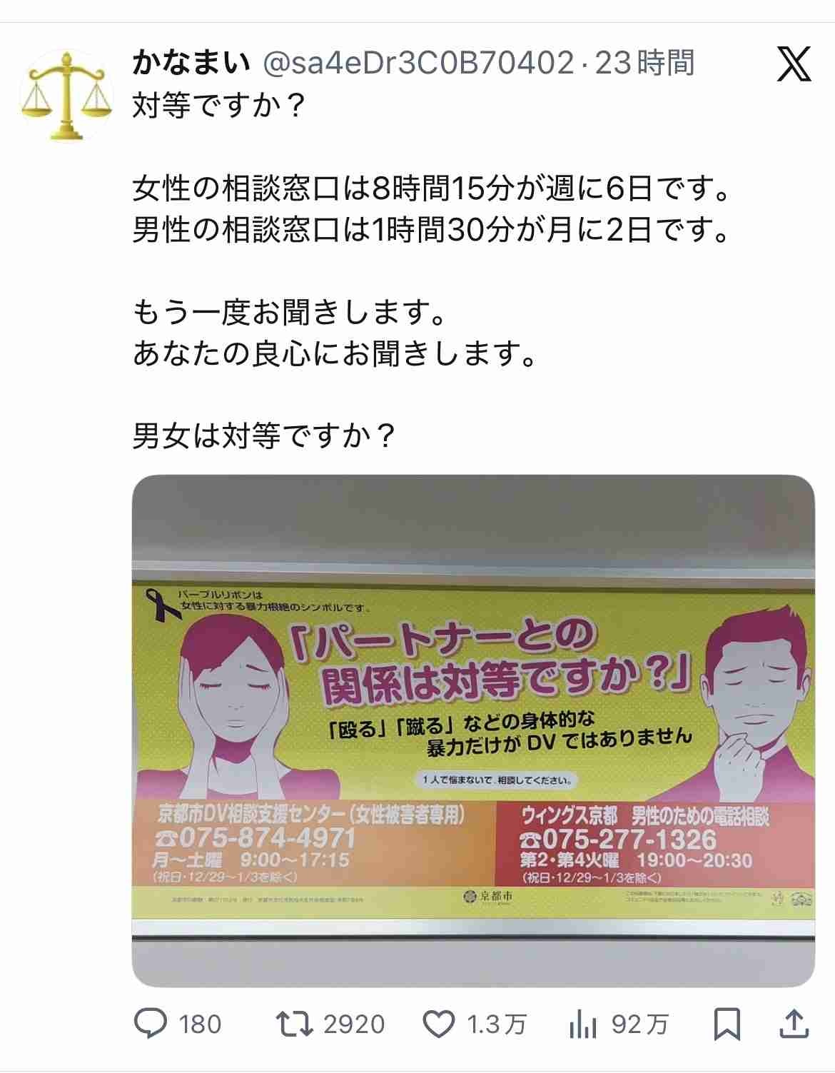 - 実際の相談件数が圧倒的に女性の方が多いだろうから仕方ないだろ