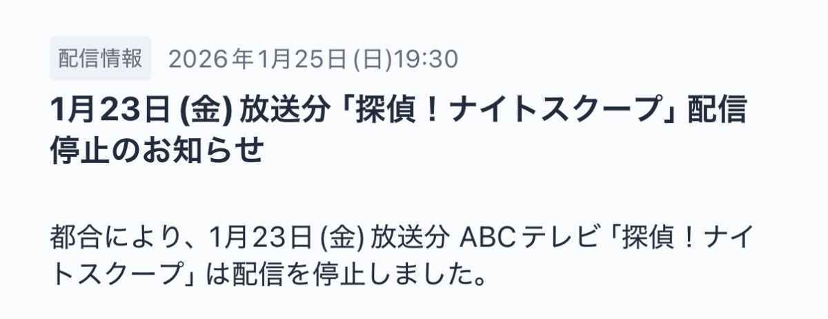 今後も取材対象者をはじめ、番組に関わる皆様の安全と尊厳を守ることを第一に番組作りを続けてまいります。 - 2 : 2026/01/25(日) 21:40:01.887 ID:fJ.O0xOcU