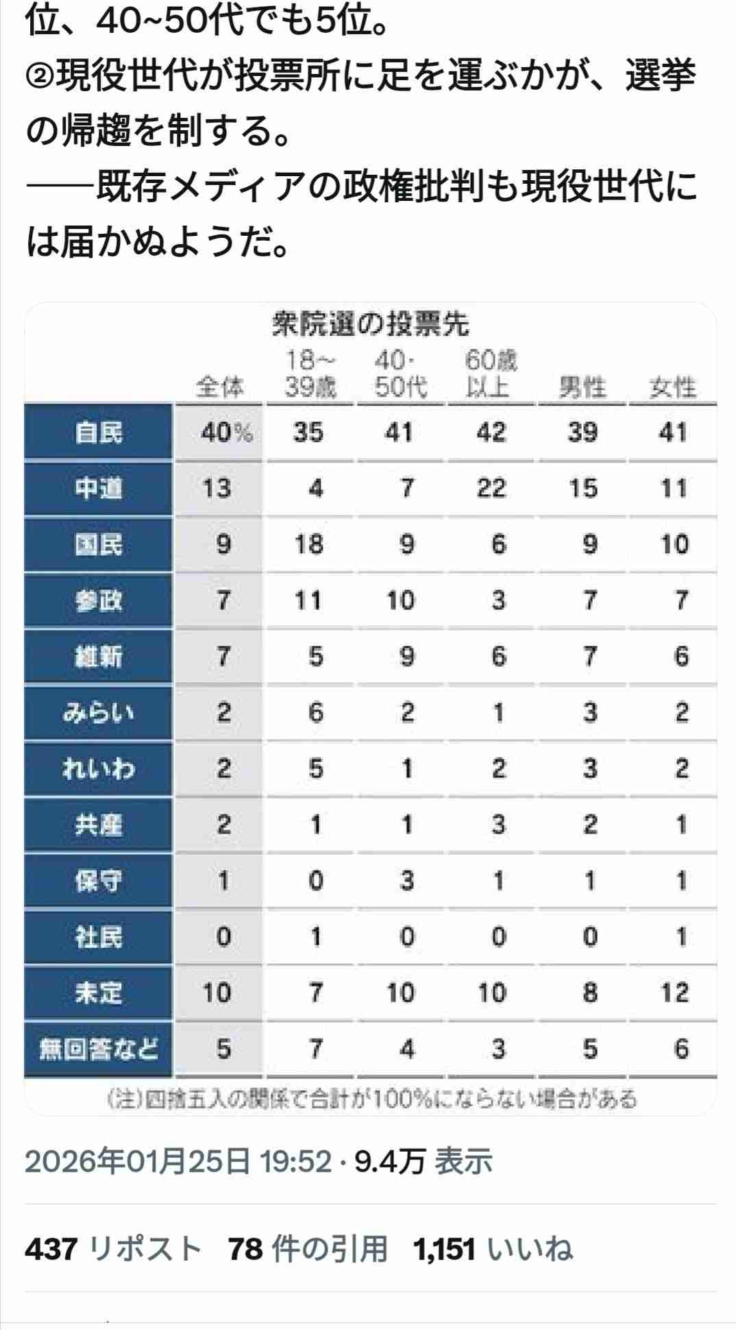 - 中道女の支持者多いと思い込んでたが虚を突かれた