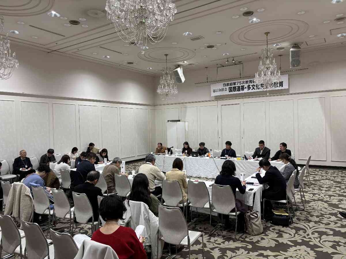 「国際連帯・多文化共生の教育」に関する授業実践例が報告された教育研究全国集会(教研集会)の分科会=1月25日午前9時10分、三重県