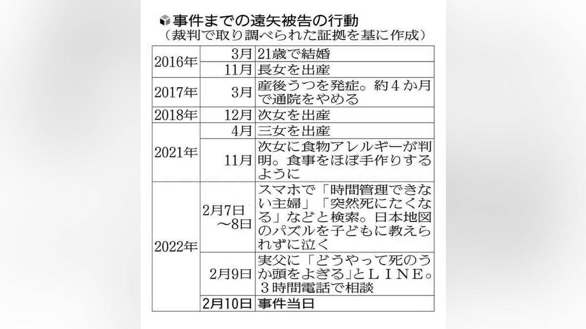 検察側は子どもたちと無理心中を図ったとして懲役25年を求刑。遠矢被告は法廷で「育児に悩んでいた」と話し、弁護側は心神喪失の状態だったとして無罪を主張している。(中略)