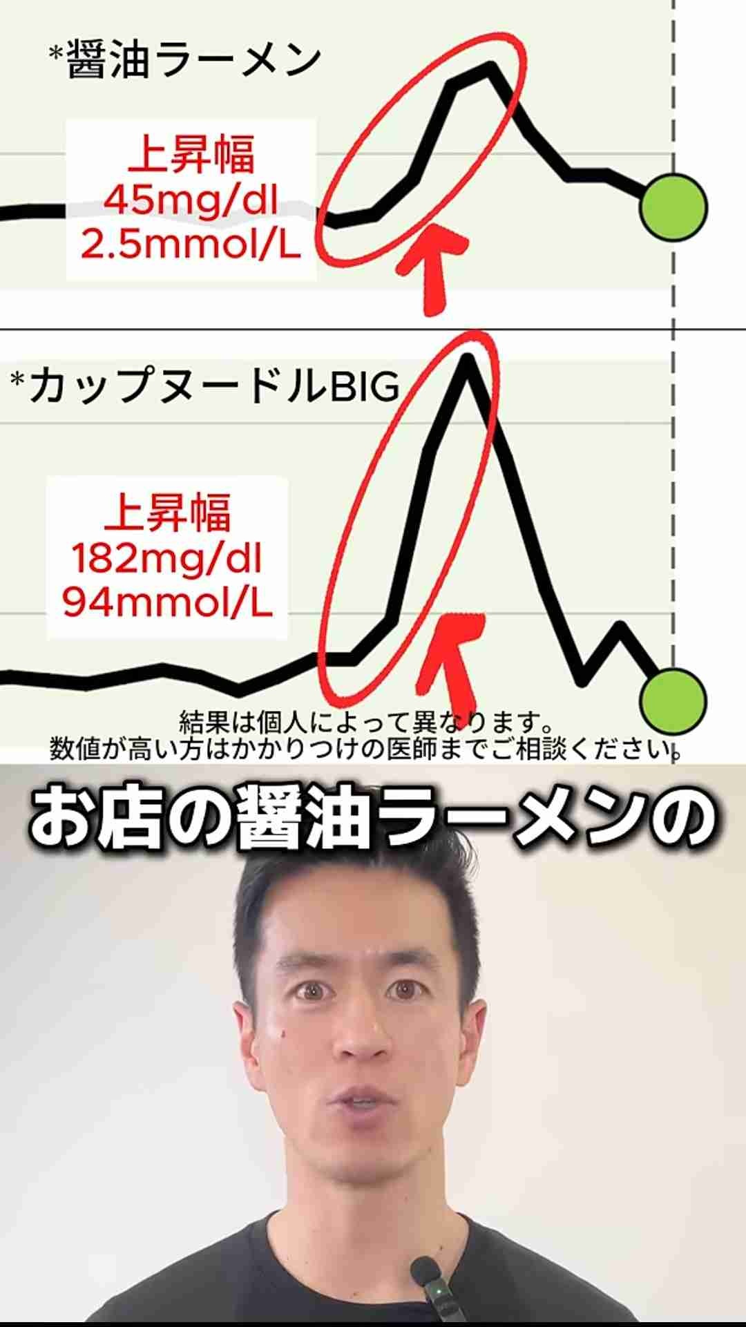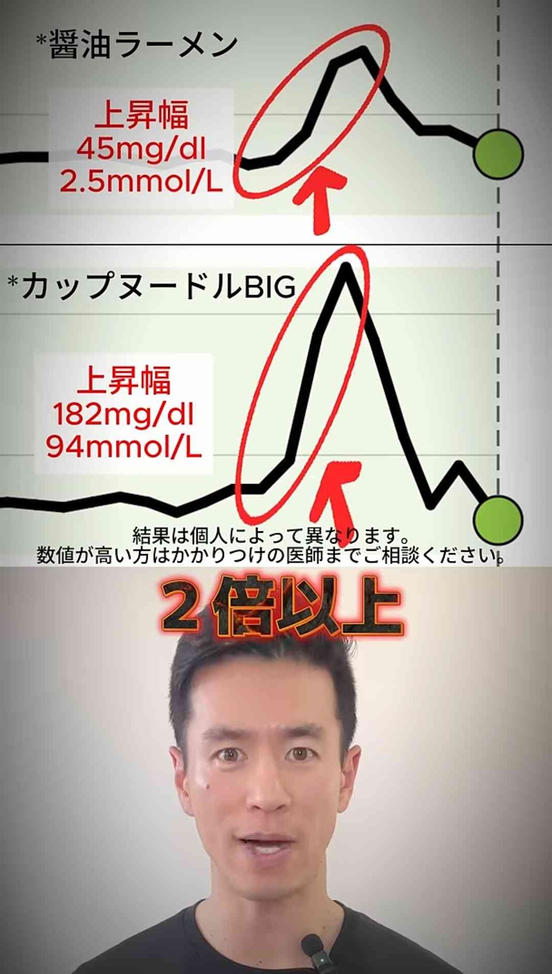 血糖値上昇幅は普店の醤油ラーメンの倍
