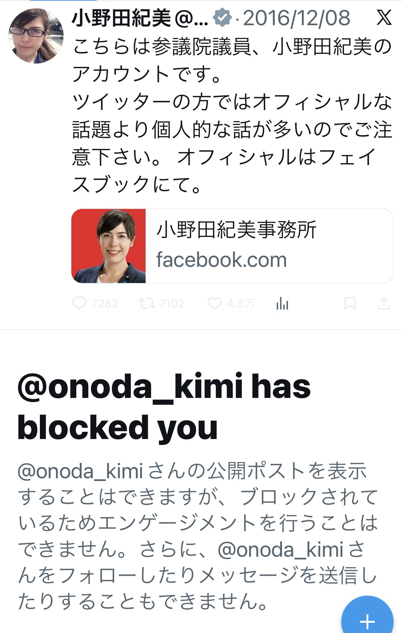 小野田紀美氏(高市政権の外国人政策担当大臣)が、私の下の発信が都合悪かったらしく、ブロックしてきた。