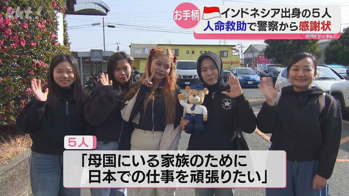 熊本南警察署から感謝状を贈られたのは、インドネシア出身の農業技能実習生5人です。