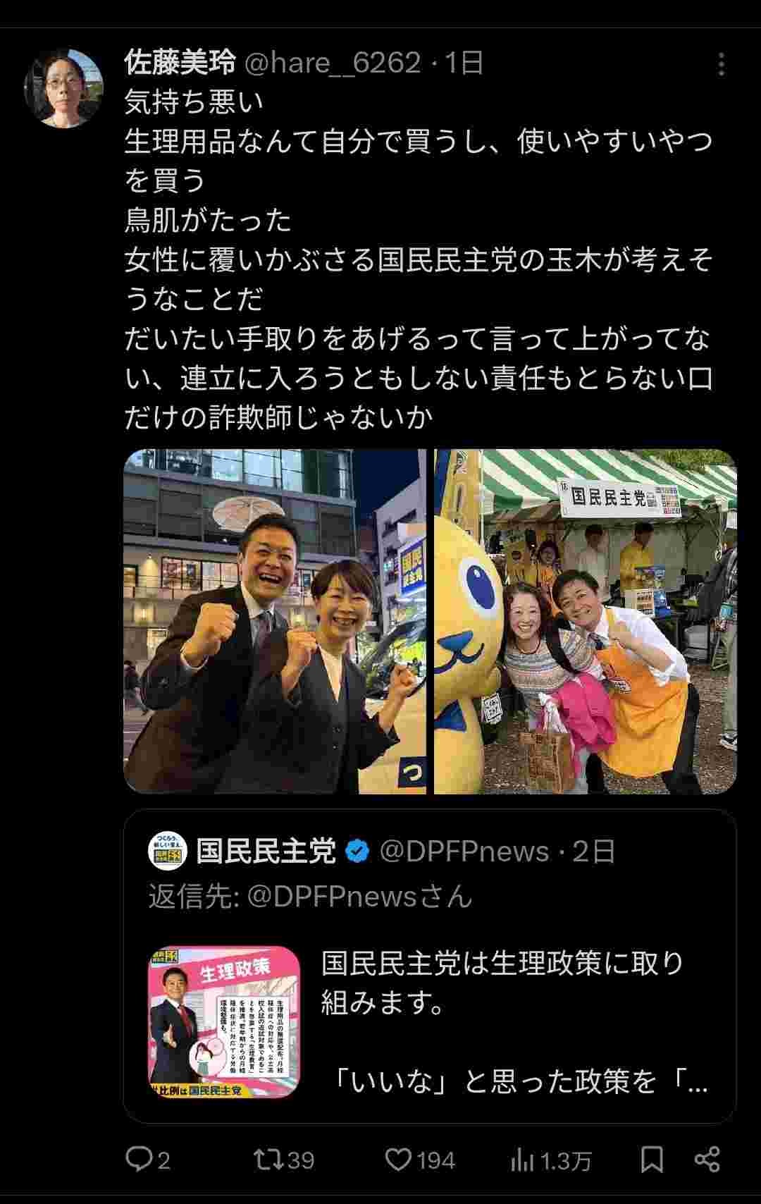 - 性的スキャンダルまみれの玉木がやるのは絵面として最悪やな