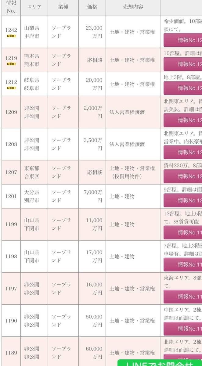 - ソープランドが売られまくってる模様