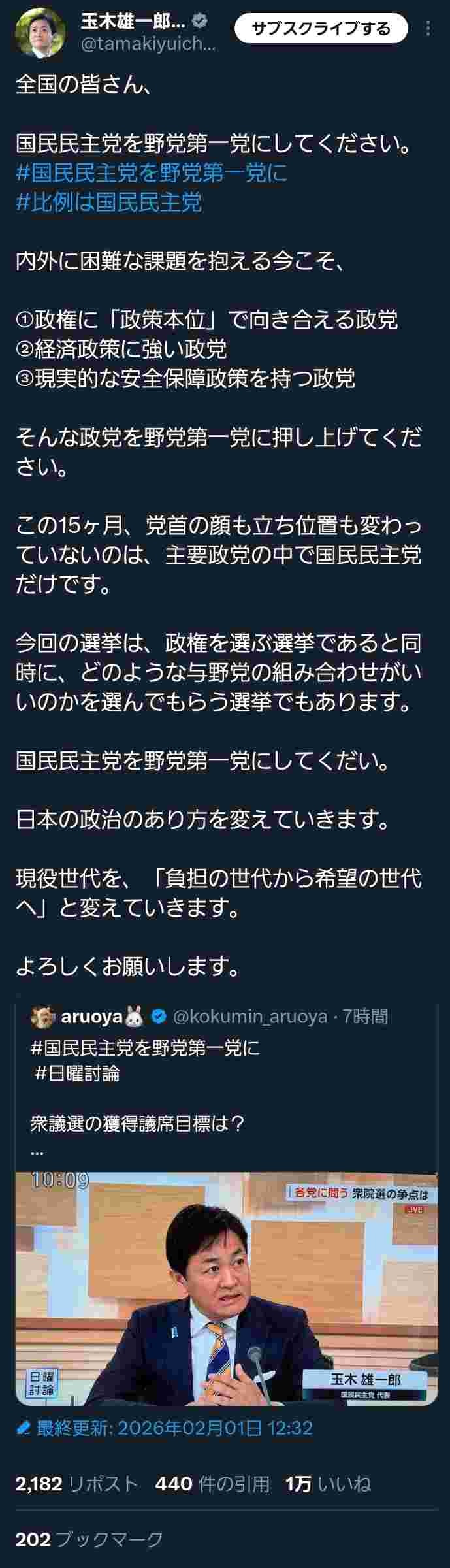 いやそれはまあ玉木やろ - 46 : 2026/02/01(日) 17:30:15.400 ID:UJbJPV46P