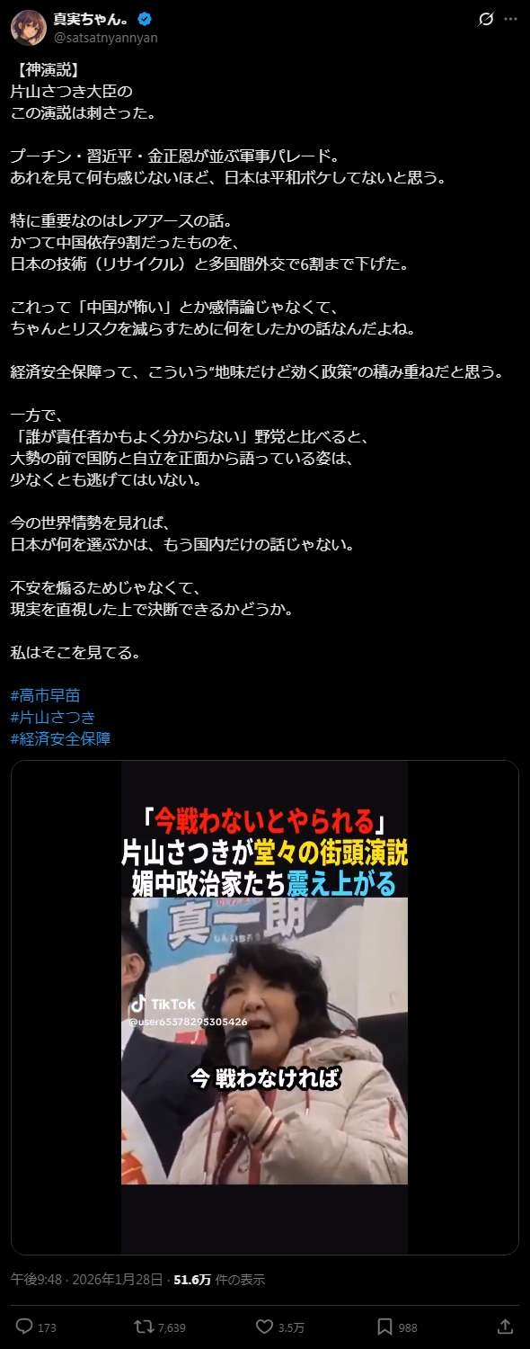 - 「高市さんは戦争したがってるわけじゃないのに左翼は批判ばっかり😡」みたいなウヨもいる