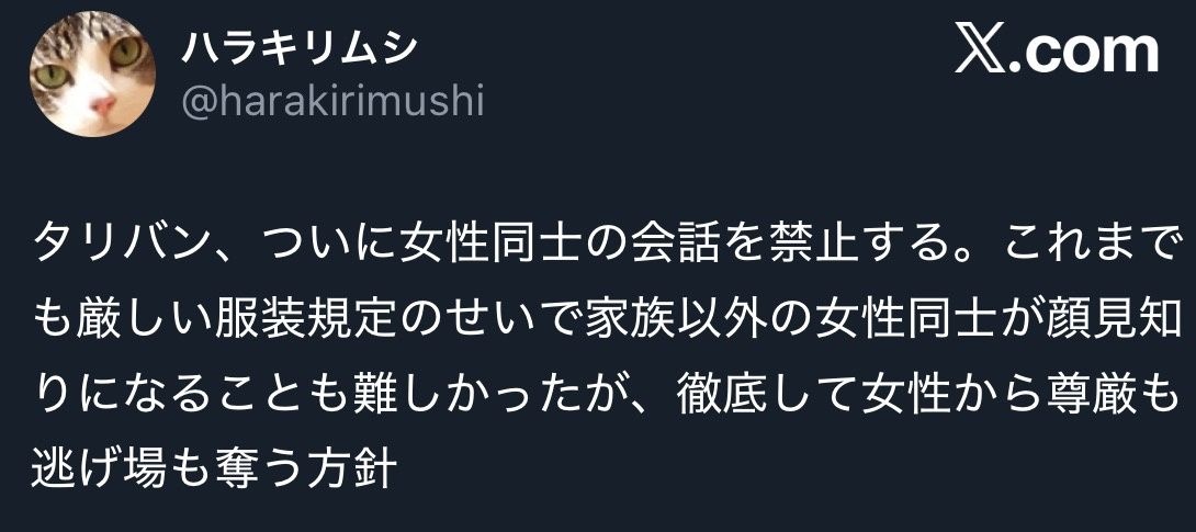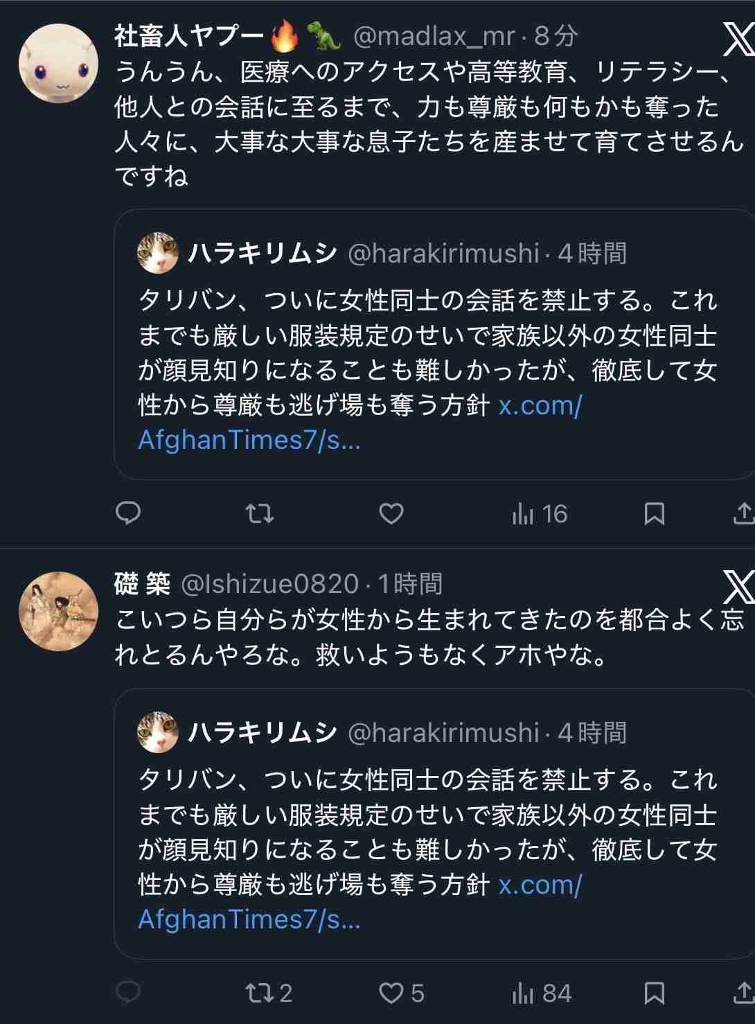- 左翼はイスラム擁護してるけどアフガニスタン人が日本に移民してきたらこういう原理主義の風習も擁護して守ってやんの?