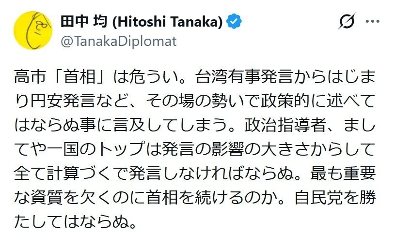 「高市『首相』は危うい」「最も重要な資質を欠く」元大物外務審議官が断言