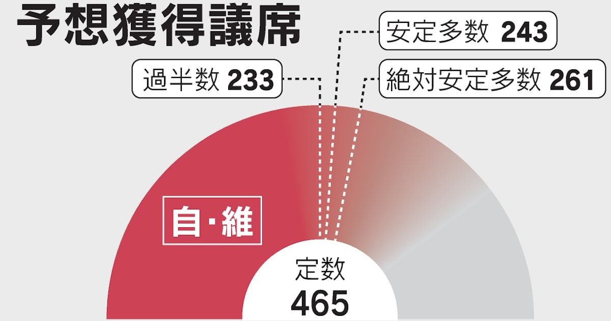 自民・維新300議席超うかがう 衆院選終盤情勢、中道半減の可能性