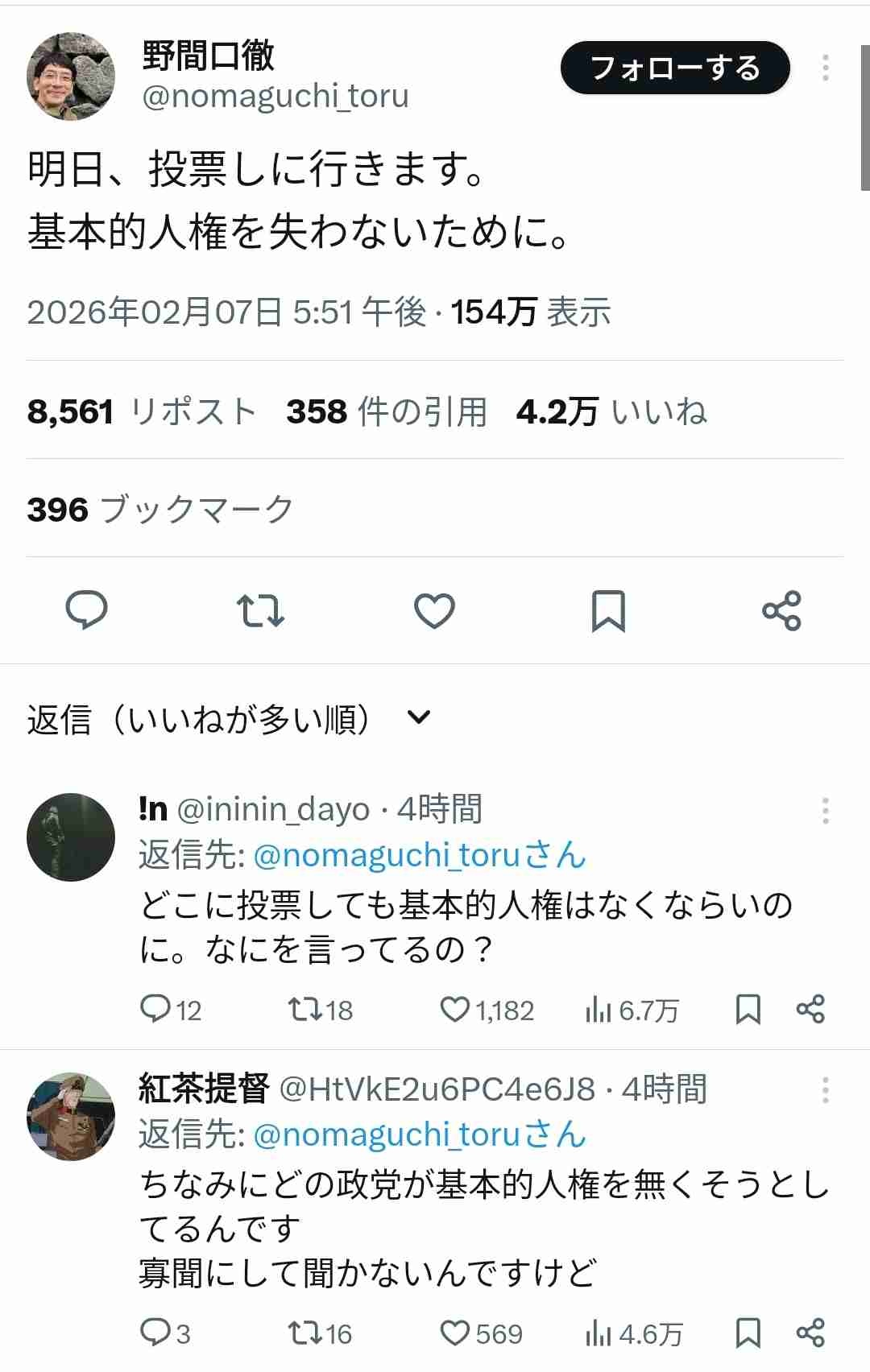 - 基本的人権を失わないために投票に行くって言ってるだけなのに批判されるの意味わからんな