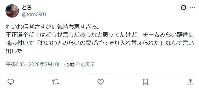 QアノンならぬR(れいわ)アノン - 14 : 2026/02/10(火) 17:49:46.16 ID:T0TpRLeH0