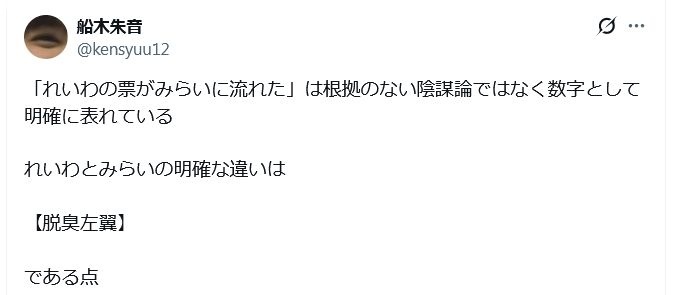 - れいわだけじゃなく日本保守と参政党、それこそ中道は特にやられてる気がするわ