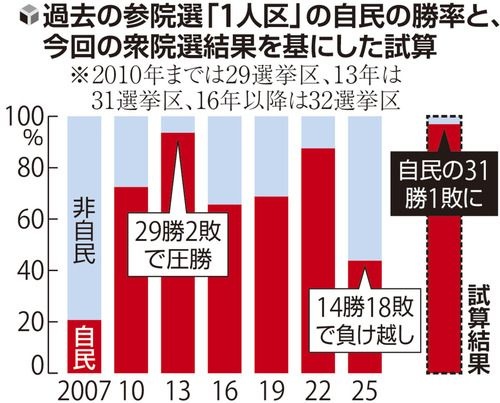 - 参院は中選挙区もあるから定数1勝負で負けるのが香川だけってことか