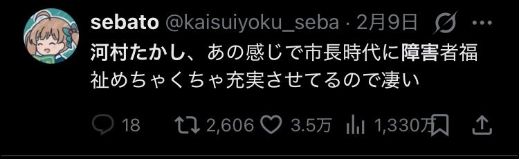 - 障がい者とか老人に金ばら撒く政治家はダメだと思ってる