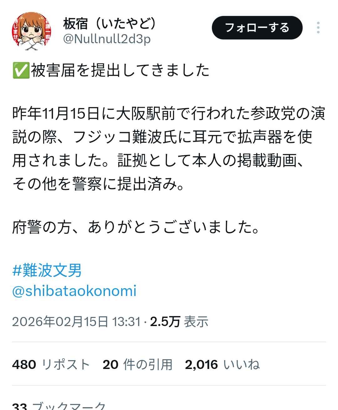 あいつが1番酷いことされてるだろ。常に演説場所に現れては酷いことされてるから演説場所の告知が全然できなかったんだぞ。 - 24 : 2026/02/15(日) 15:35:25.50 ID:bGA85CLw0