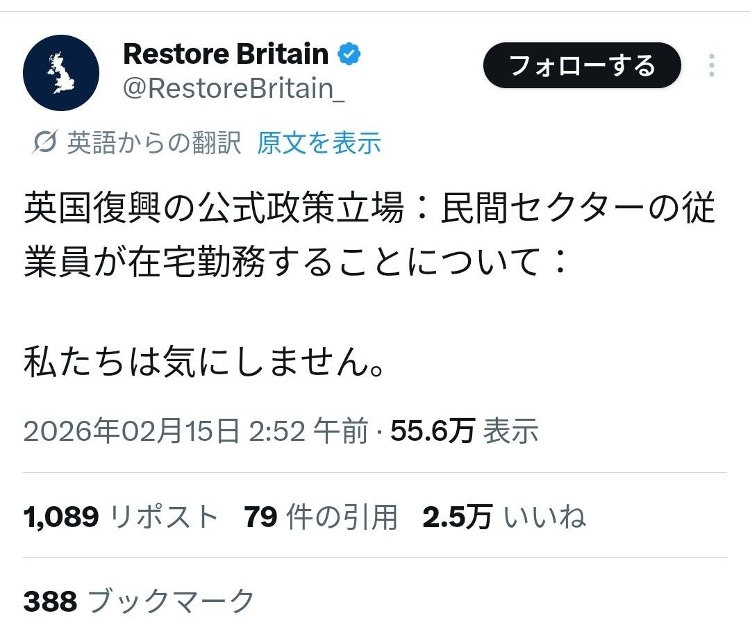 Reformは移民抑制する代わりに在宅勤務を減らしてちゃんとイギリス人に働かせようとしてるけどRestoreは区別化のために在宅勤務認めてる。イギリス人の労働を楽にするし移民は追放するというネトウヨが喜ぶ政策