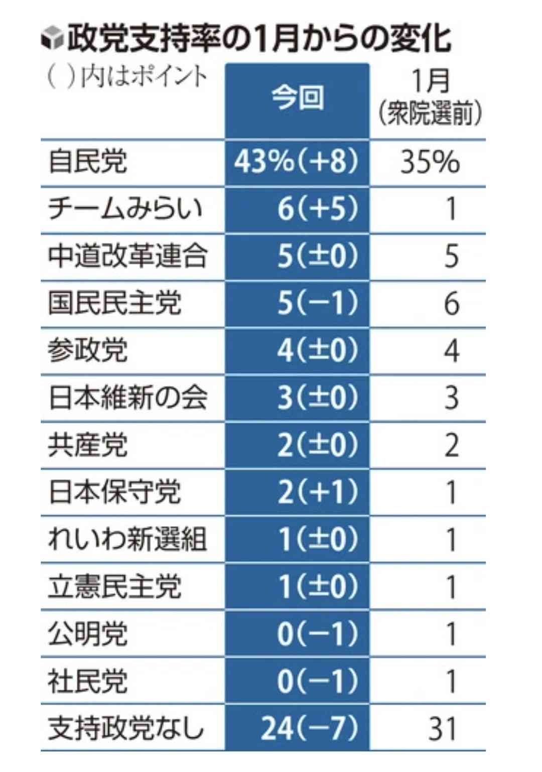 - 野党トップが6%で草