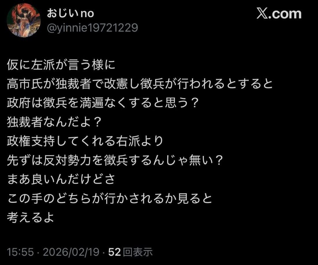 - そんなんに武器渡したら高確率でそのまま高市とウヨップに