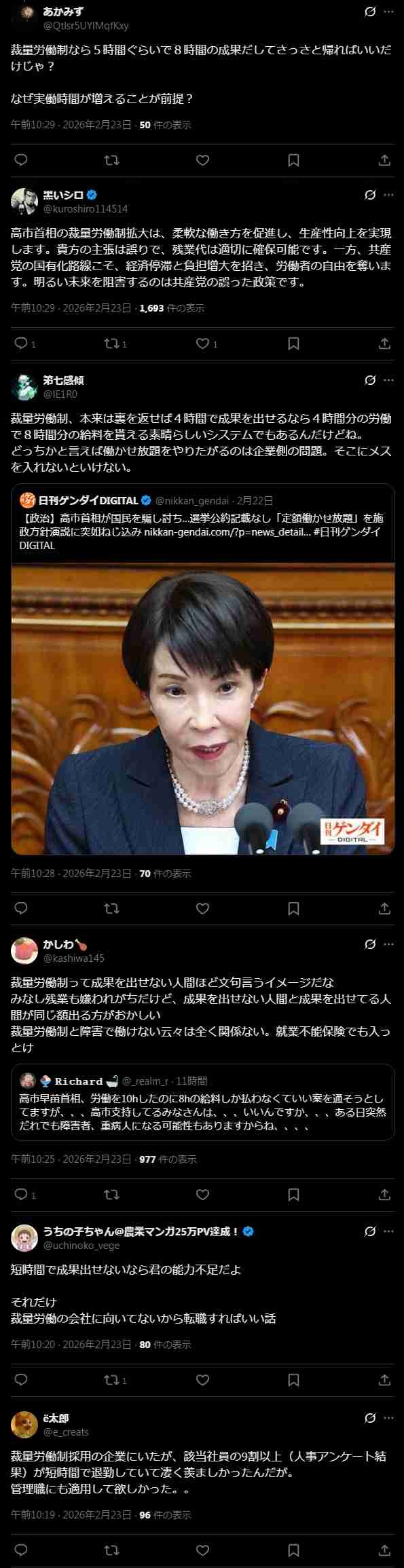 - 仕事量を決めるのは「高市さん」じゃないぞ?それぞれの会社だぞ?
