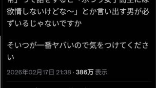 あれくらいじゃ大したことない量なのにあそこまで叩かれるなんて世の中狂ってるよ - 31 : 2026/02/23(月) 12:07:23.127 ID:m1NPreA0v