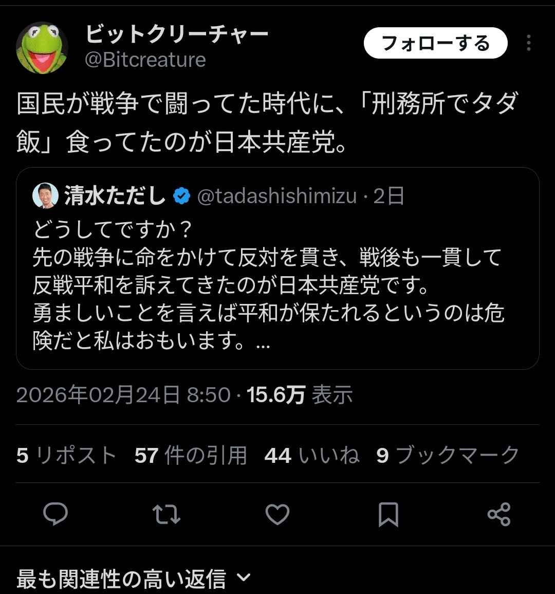 普通に義務教育受けてほんの少しの教養があれば共産党を頭ごなしに否定する人間には育たない - 75 : 2026/02/25(水) 17:21:13.70 ID:YnAhq+170