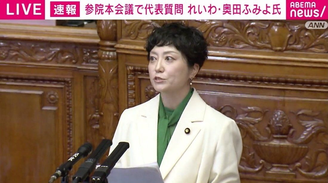 れいわ・奥田議員が国会で暴走? 「戦争に巻き込まれた時、最前線に行くのは誰なんですか? 高市総理率いる自民党なんですか?」→議長「速記録を調査の上、適切に措置したい」釘を刺す(ABEMA TIMES) - Yahoo!ニュース26日、参院本会議の代表質問で、れいわ新選組の奥田ふみよ共同代表が過激な言葉で高市総理に迫った。 新たに共同代表に就任した、れいわ新選組の奥田ふみよ議員は冒頭「子どもたちを守るのが政治です。私news.yahoo.co.jp - 8 : 2026/02/27(金) 12:20:30.287 ID:XPH/oyIqT