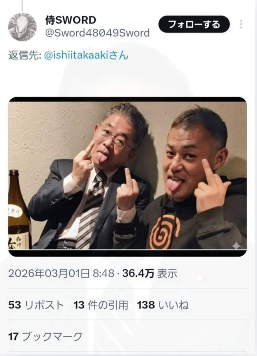 酔っ払ってこういうことしちゃうノリはわりと好き - 53 : 2026/03/01(日) 19:46:07.10 ID:a/wqGm150