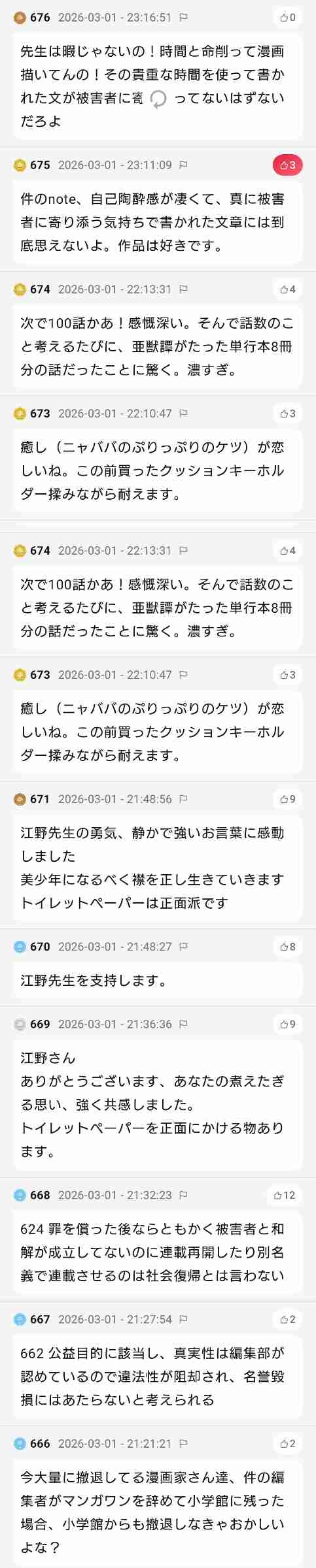 - コメント欄でも賛同の嵐