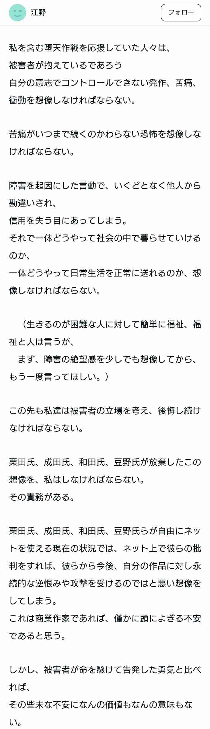 - 被害者がいる凄惨な事件なのに、自分の主張を押し通すための道具みたいに使うのは良くないと思う