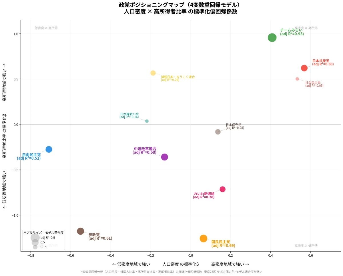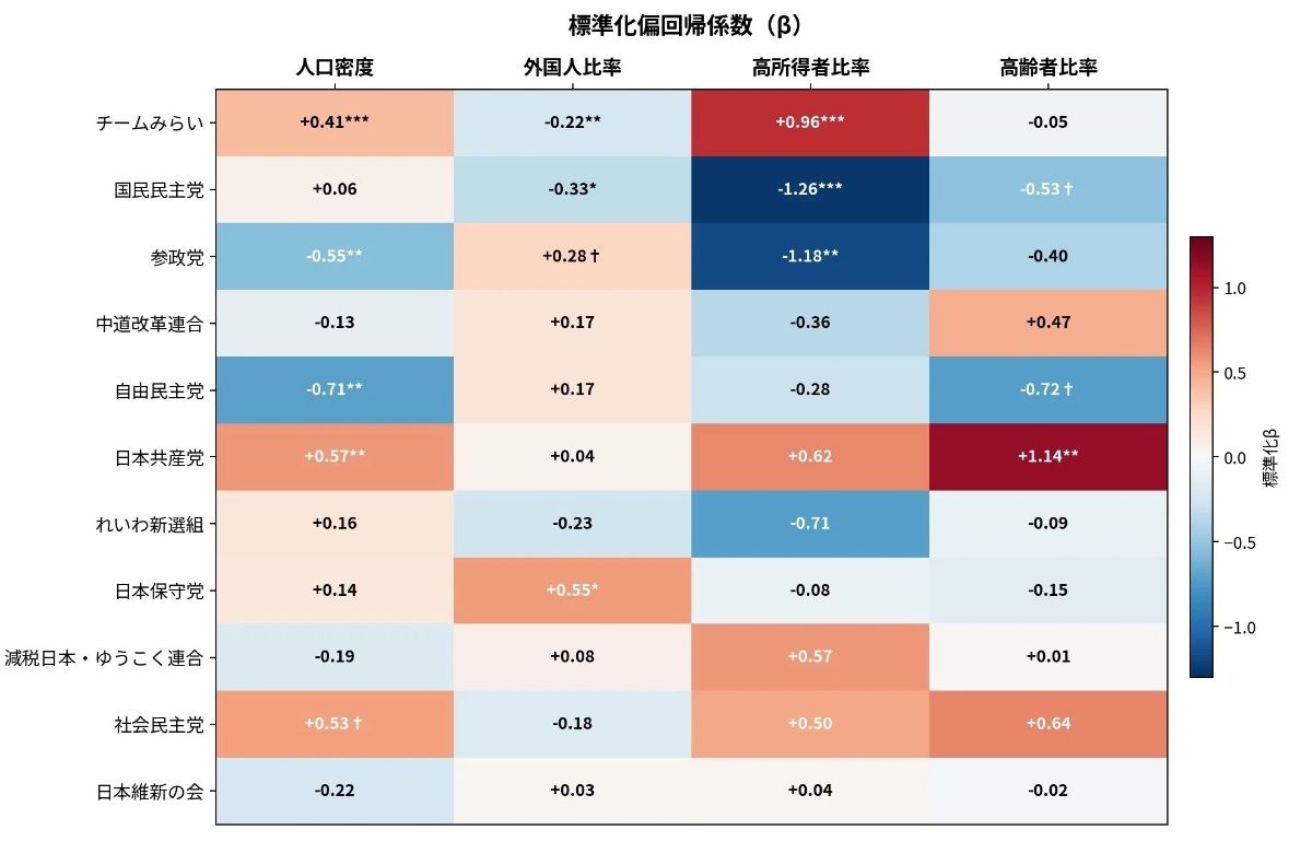 - 人口密度の低い地域に人気の自民党