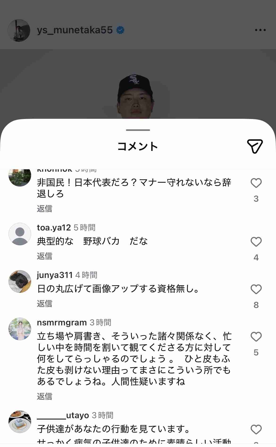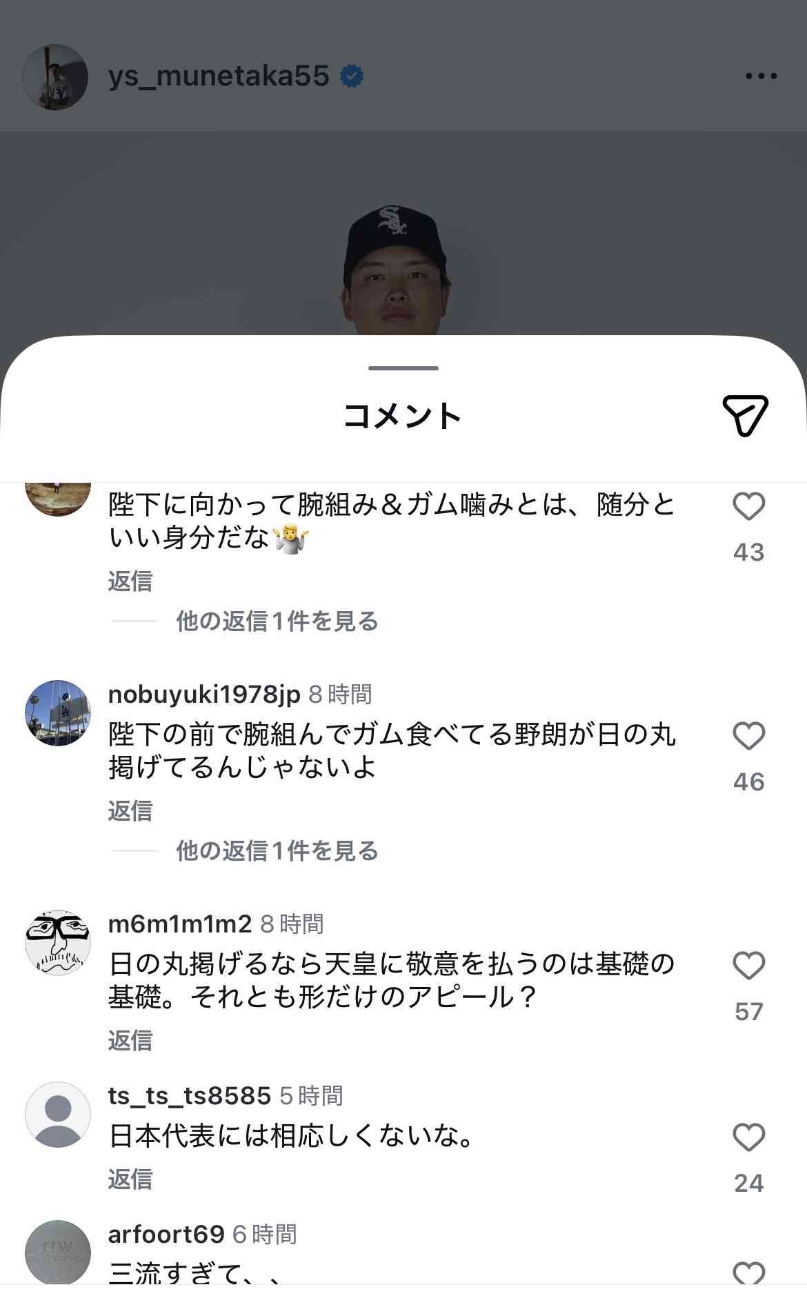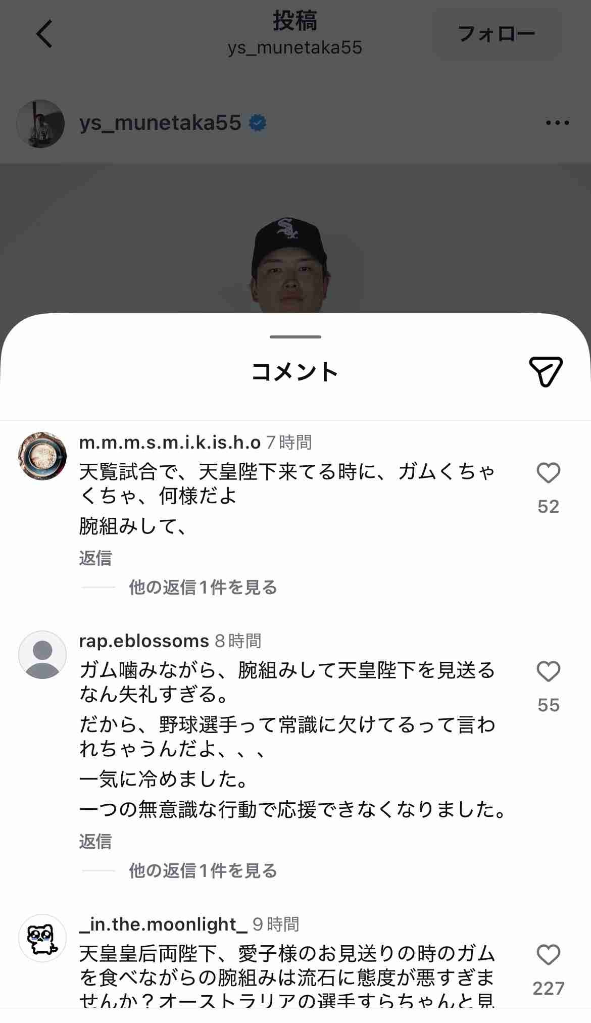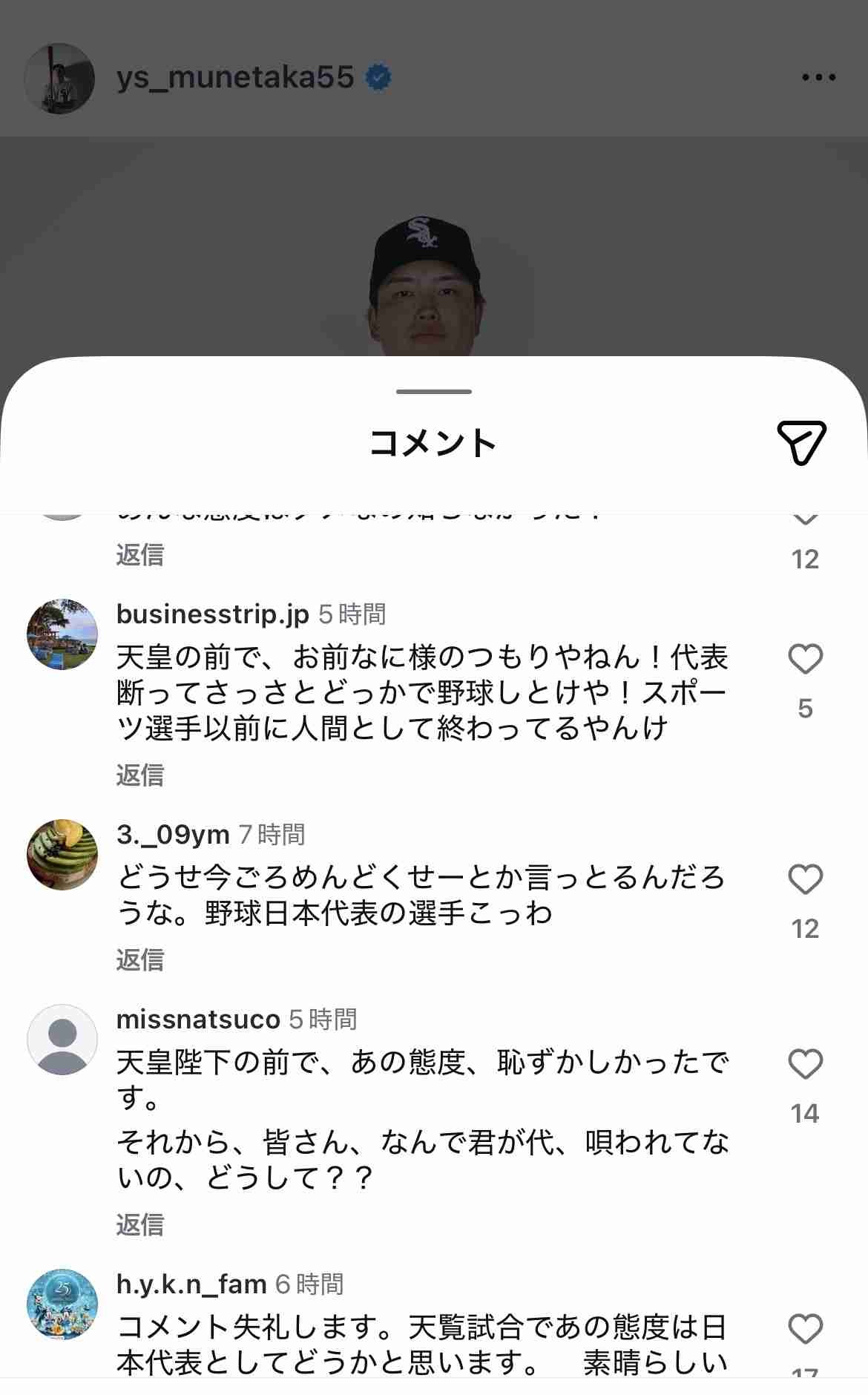 - インスタにも批判殺到