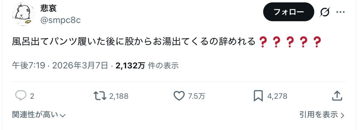 男も肛門からお湯出てくるの困るよな - 41 : 2026/03/10(火) 11:07:13.988 ID:AIDH/IgtG