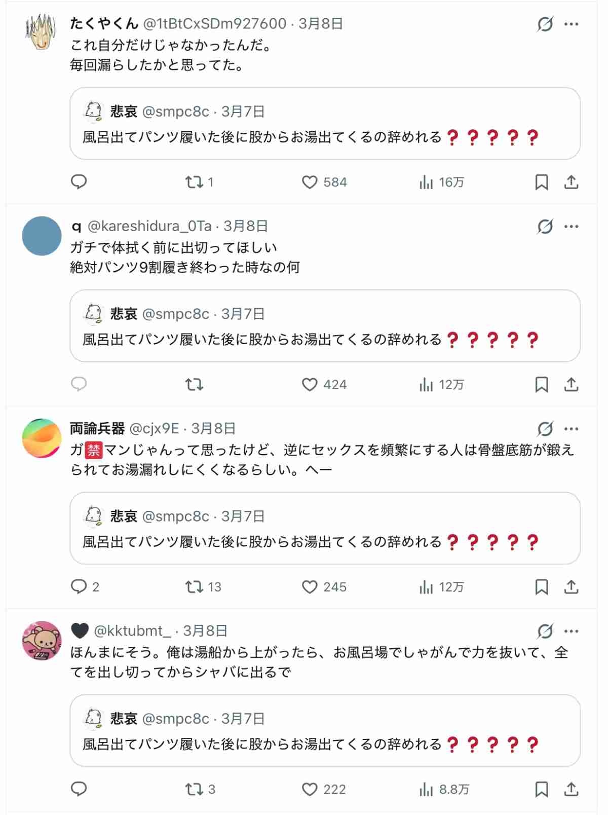 - ワイもお風呂から上がった時尿道からトクトクっとお湯がチロチロ出るわ