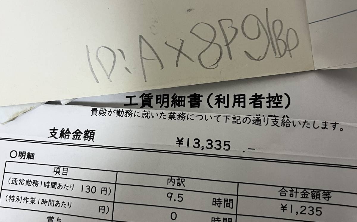 - 作業所にもよるんやろうけど結構がっつり仕事させられてる割に時給激安で気の毒になったわ