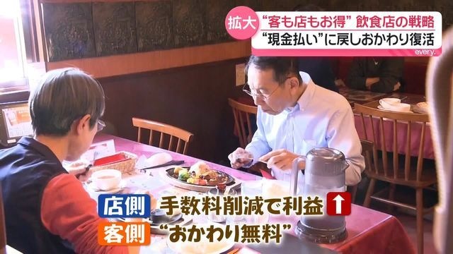 「それでご飯が無料になればそれもいいのかなって」店側は手数料を削減したことで月の利益がアップ。客側は“おかわり無料”でお得に食事ができる。ウィンウィンの関係が作れたといいます。