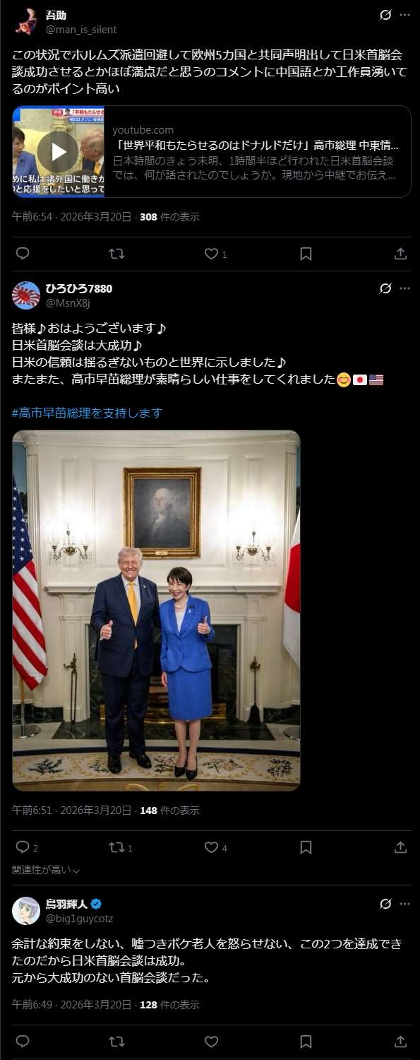 にも関わらずトランプを喜ばせたのはなかなか凄いと思うぞ - 102 : 2026/03/20(金) 08:59:51.87 ID:q2cclR3+0