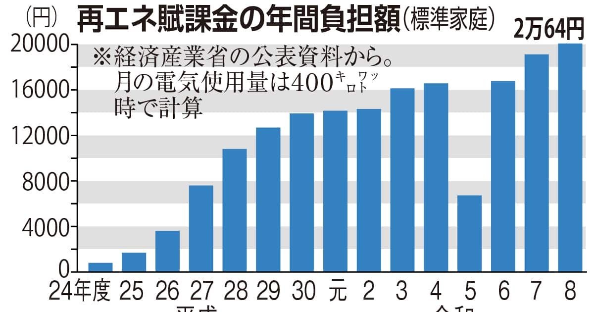 再エネ賦課金の国民負担が過去最高の3兆2千億円に 8年度、世帯負担は初の年額2万円台
