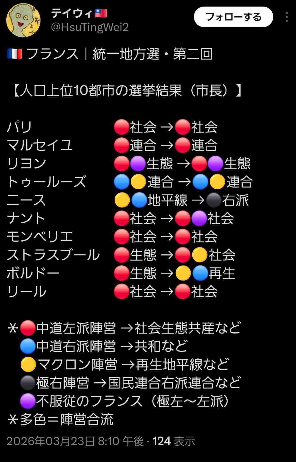 人口上位10都市の9都市で共産党緑の党社会党などの左派陣営が勝利
