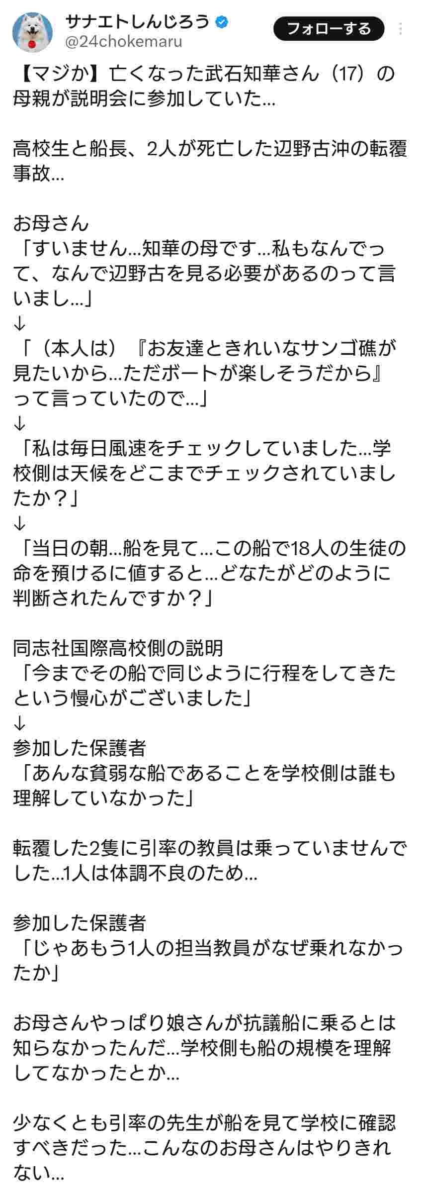 - 遺族が学校の説明会に出てたらしいな