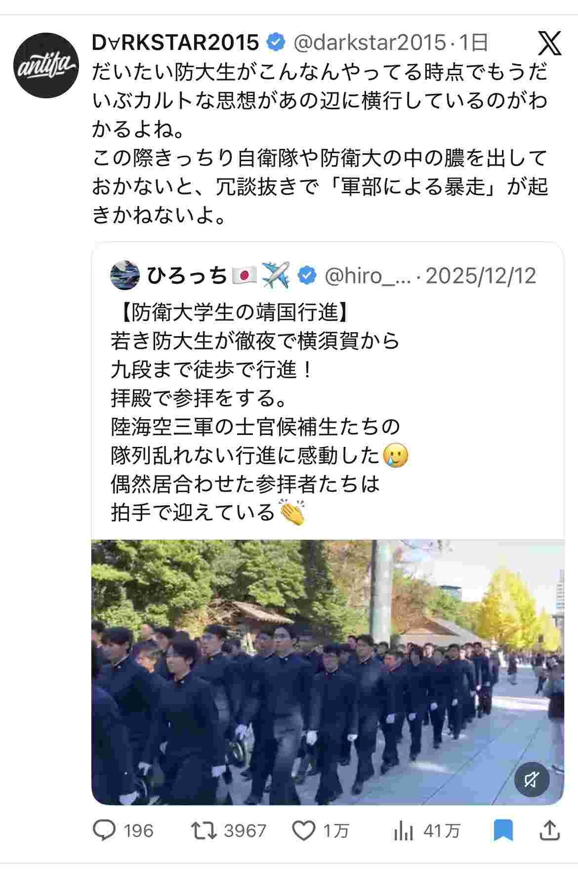 - こんなんしてっから自分に酔って襲撃起こすやつ出るんだよ