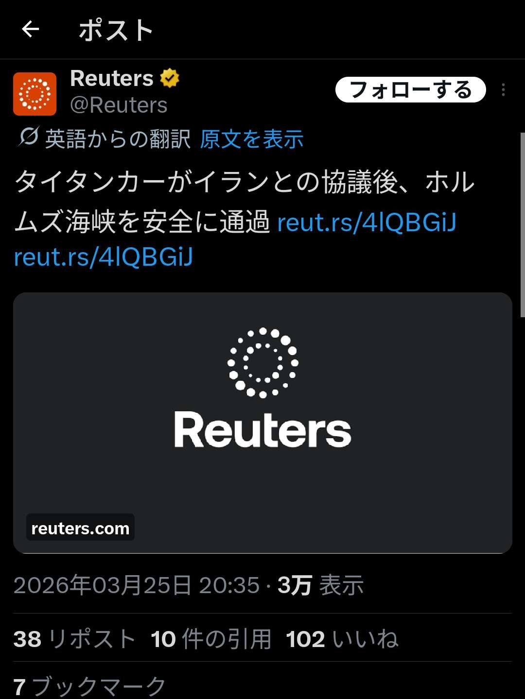 一次的に消えた時点で経済に大ダメージ定期 - 37 : 2026/03/27(金) 08:57:50.407 ID:z0ob0bck4