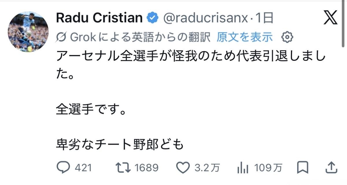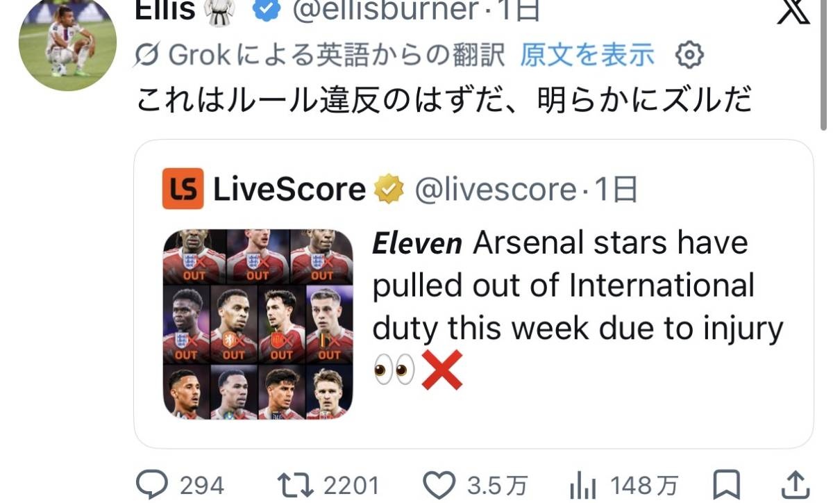 それとは別にアーセナルのやつらが逃げまくってるから叩かれてる - 19 : 2026/03/31(火) 11:46:13.86 ID:oPD3bl2d0