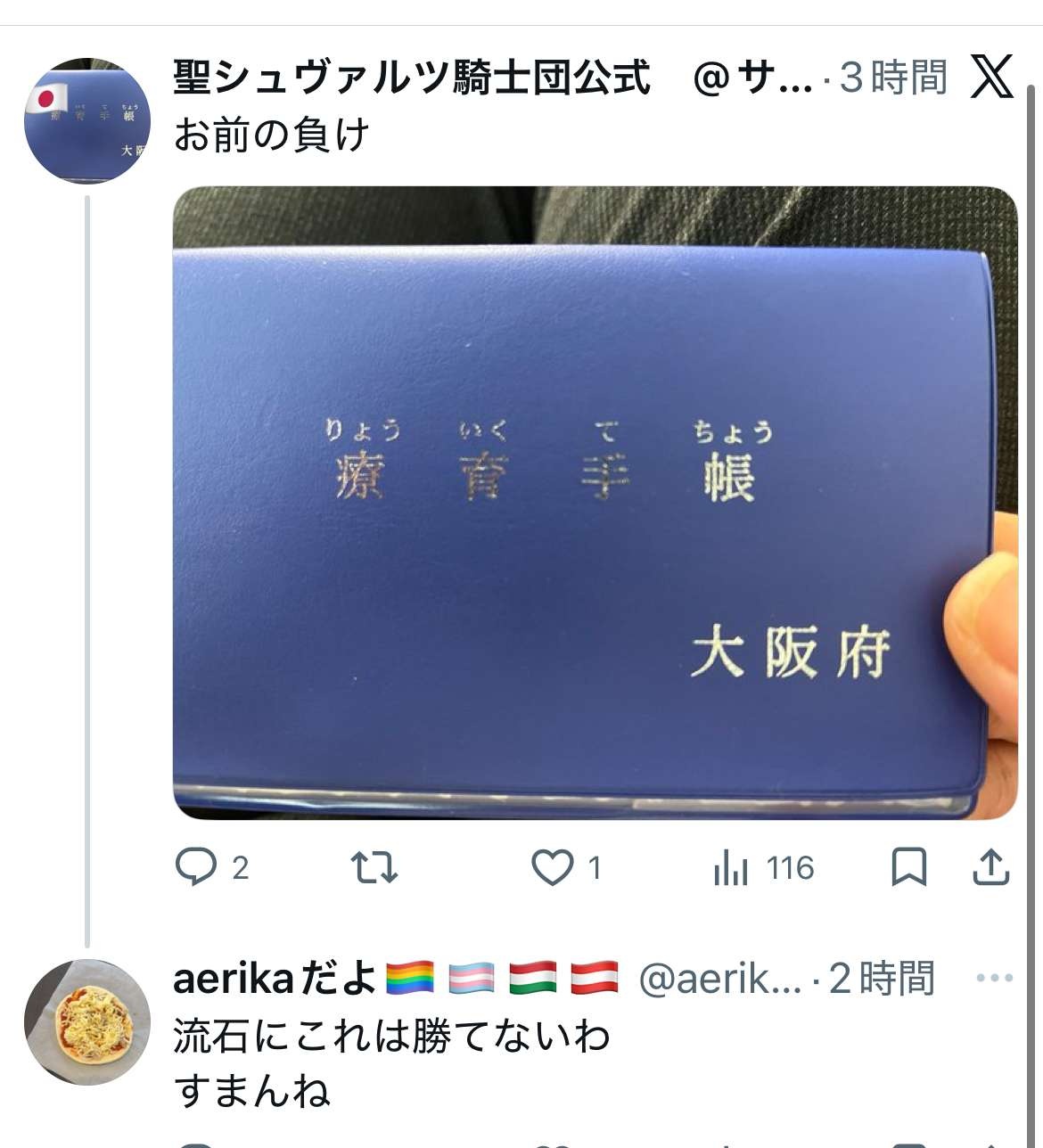 - 療育手帳をサムライブルーっていうのセンスあるな