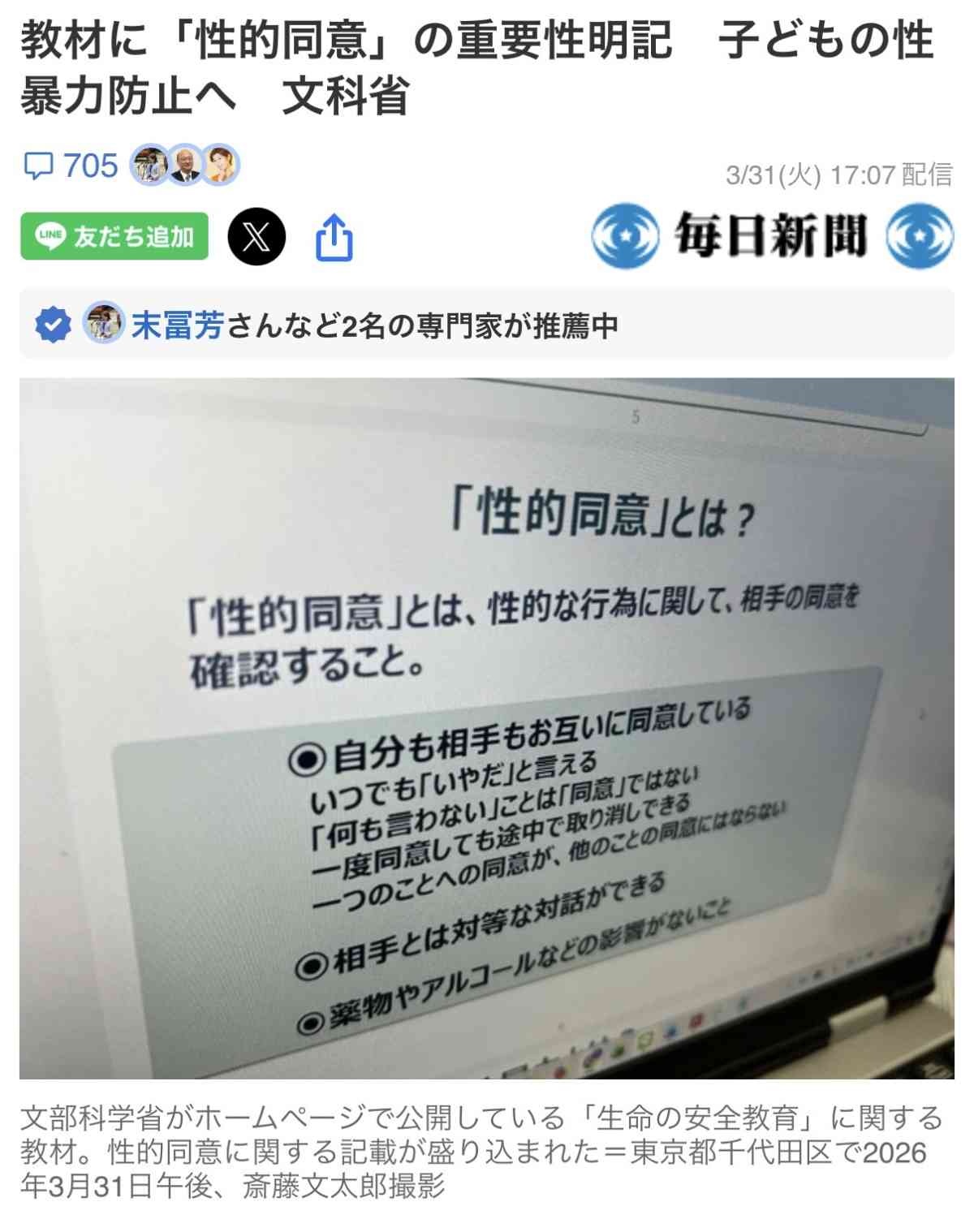 - 教材に「性的同意」の重要性明記 子どもの性暴力防止へ 文科省