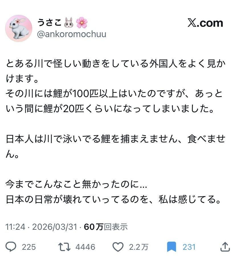 畑から作物盗んでくより全然マシ - 52 : 2026/04/01(水) 14:59:19.61 ID:E2DE2+T40